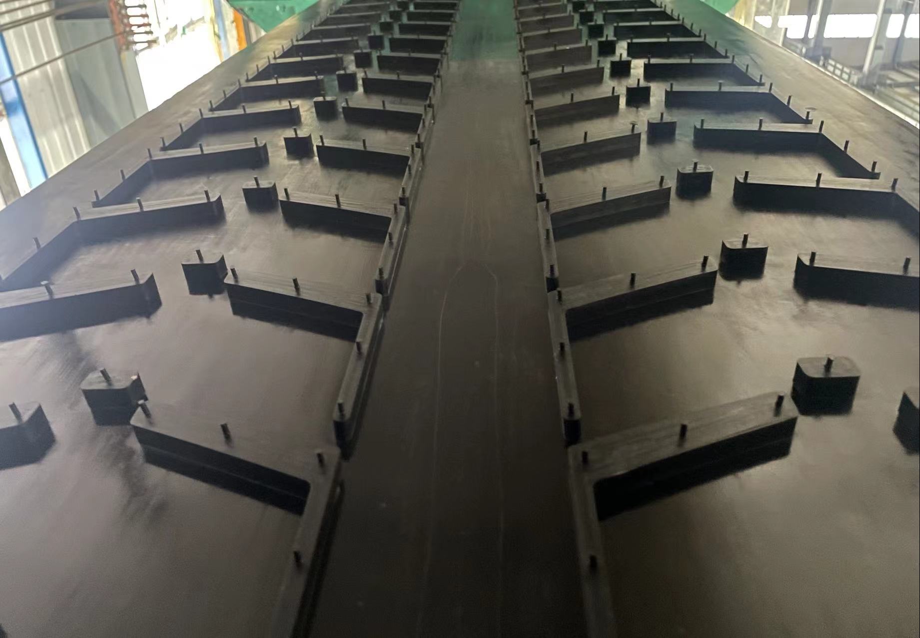Chevron belts are designed with cleated surface which can hold the loose materials in place preventing rollback and spillage in inclined applications. The height of the profile can ranges from 5mm to 32mmdemanded by different working conditions.